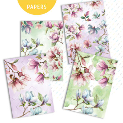 Printable Spring Magnolia Digital Papers kit includes: