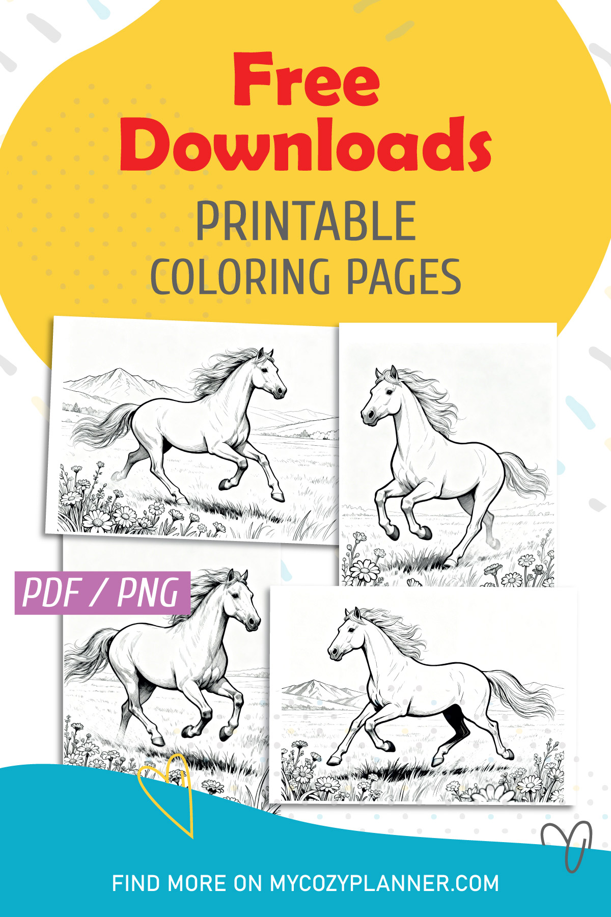 Introducing our Free Happy Horse Coloring Pages – a joyful and detailed collection of printables featuring realistic horses!