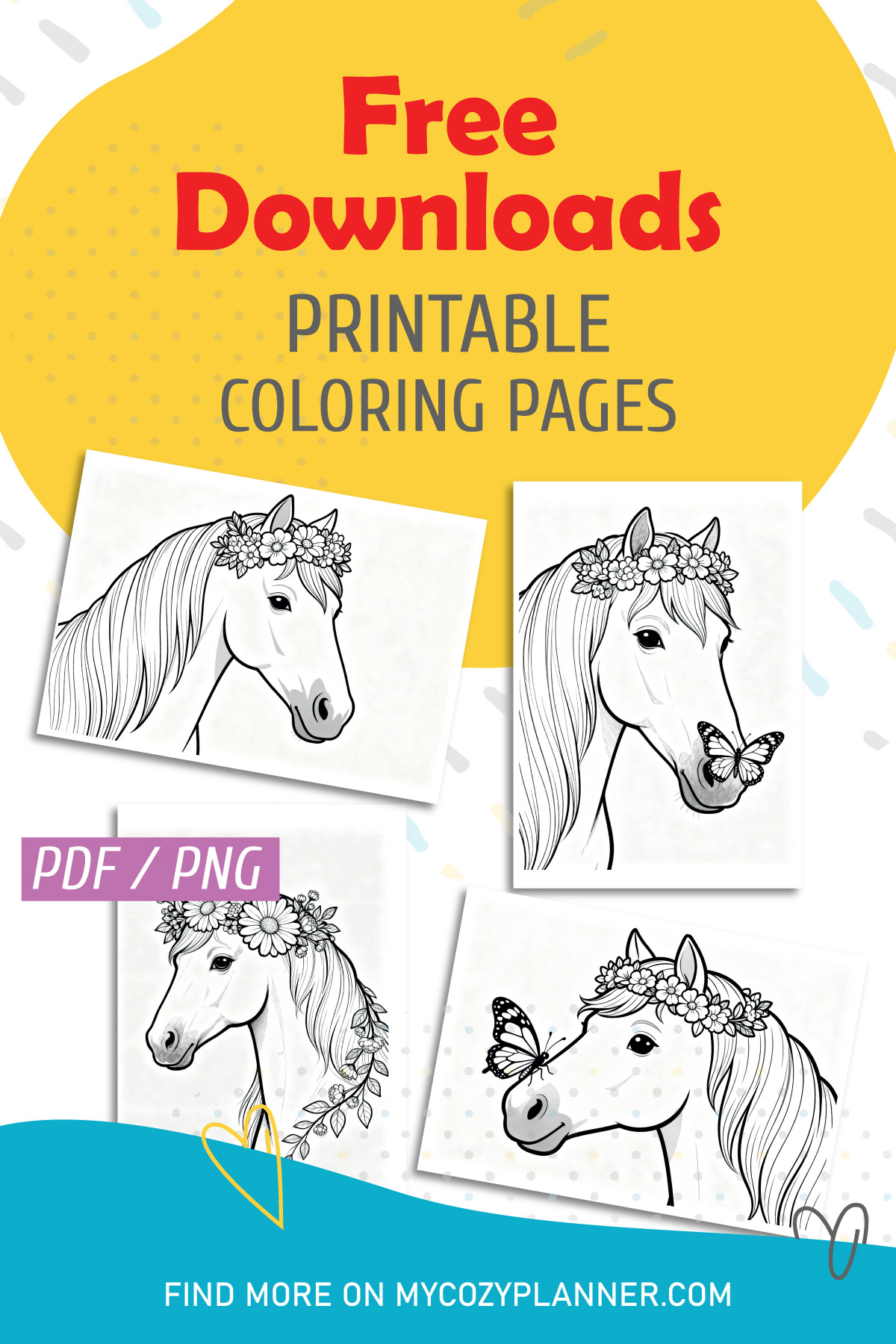 Introducing our Free Horse and Flowers Coloring Pages – a beautiful and calming collection of printables featuring elegant horse heads surrounded by floral designs!