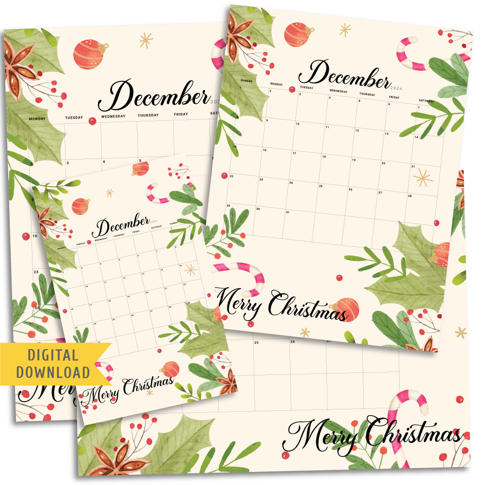 Christmas Monthly Calendar. Free Digital Download.
