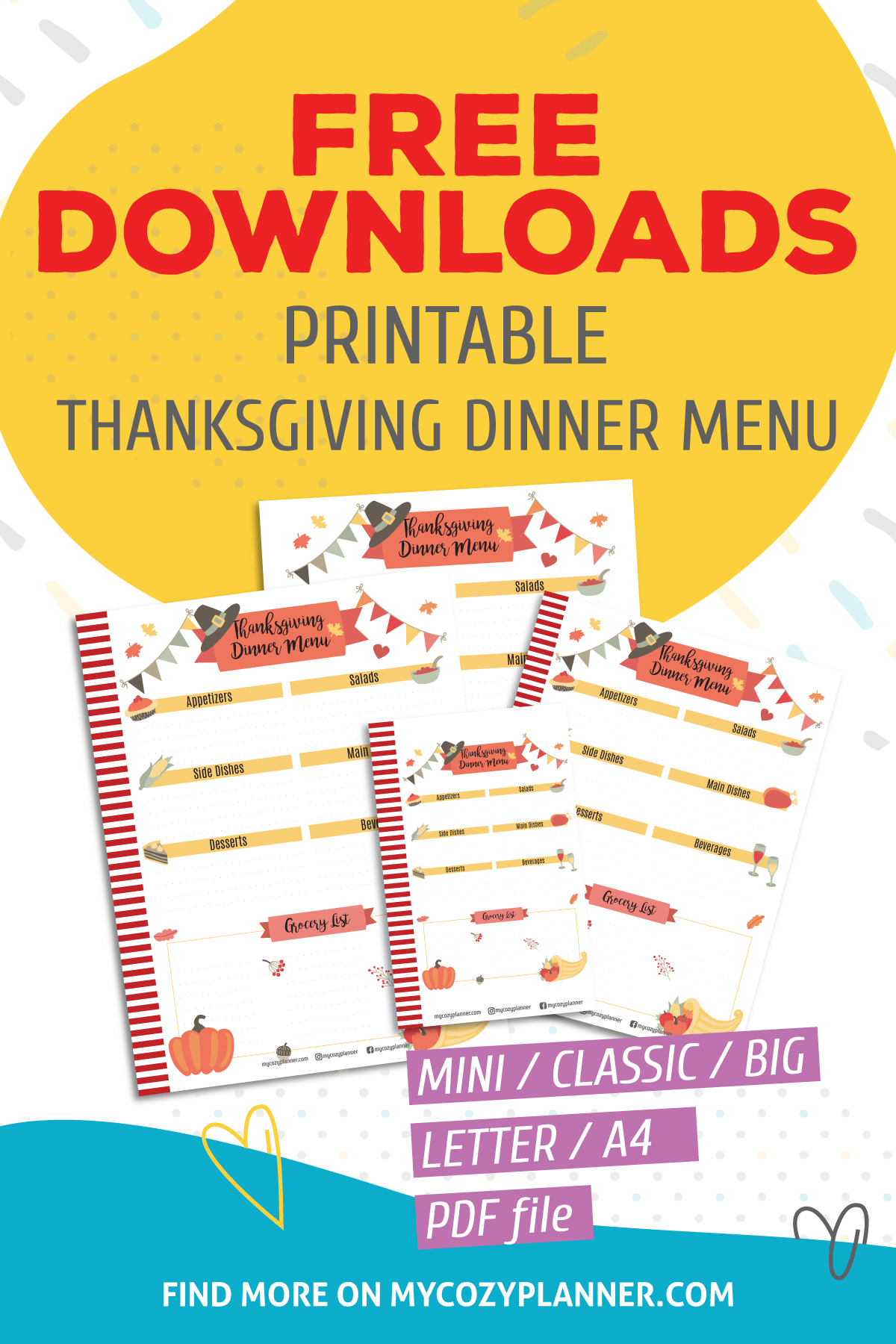 Free Thanksgiving Dinner Menu. Free Digital Download