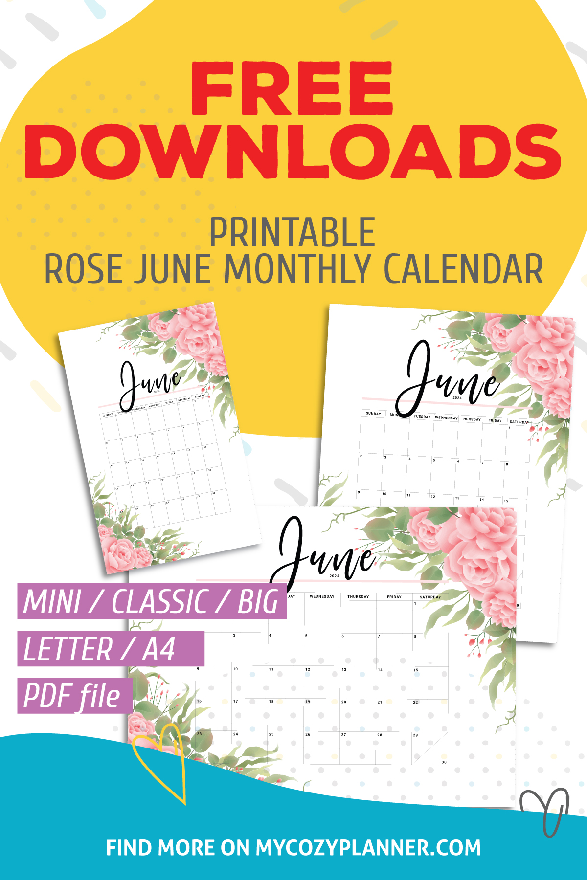 Introducing our Free Rose June Monthly Calendar โ a delightful and printable planner template available in two versions and two page orientations to cater to your planning needs.