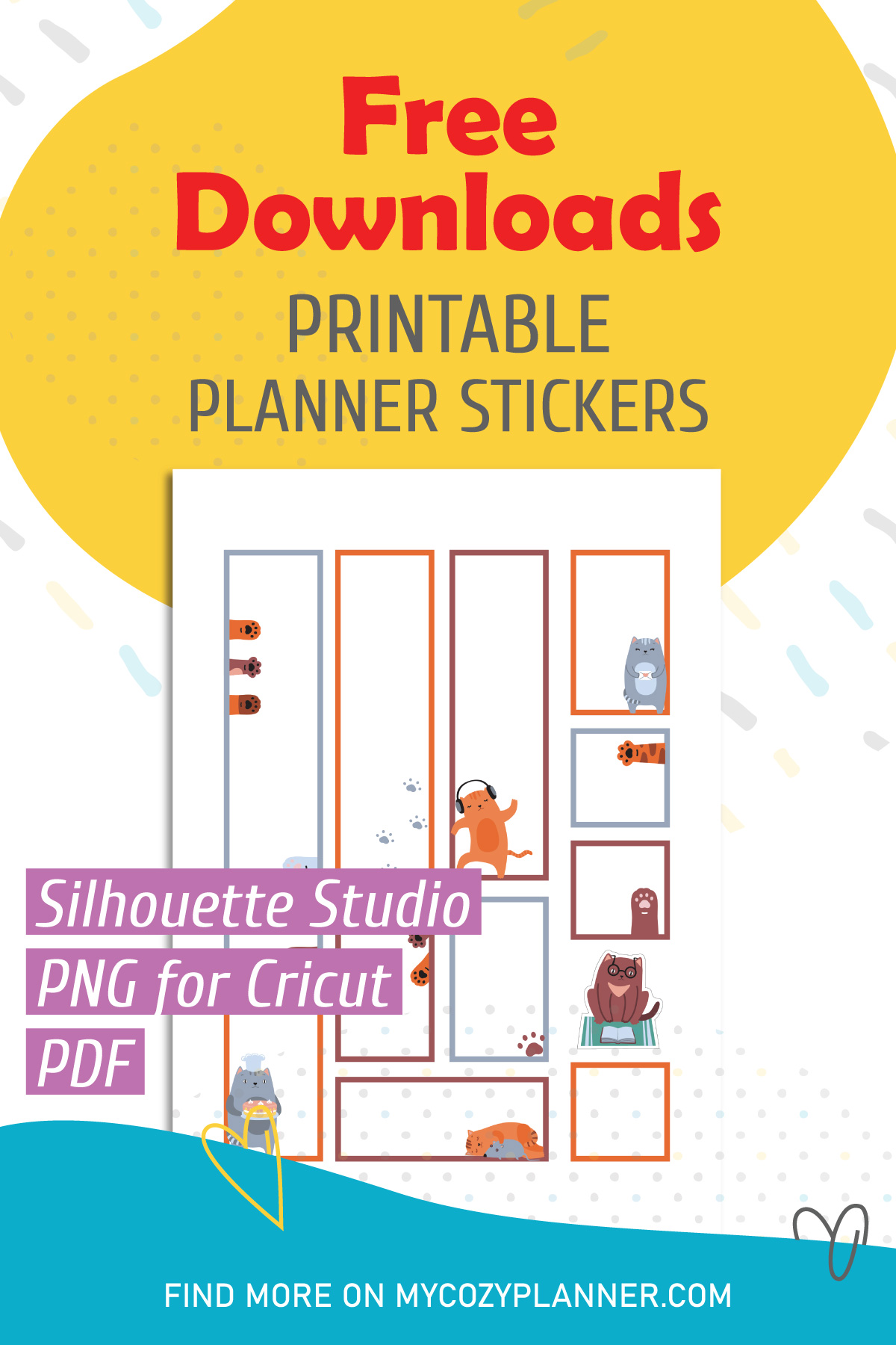 Introducing our Free Busy Cats Frames Stickers โ a playful and purr-fectly adorable way to decorate your planner, journal, or crafts!