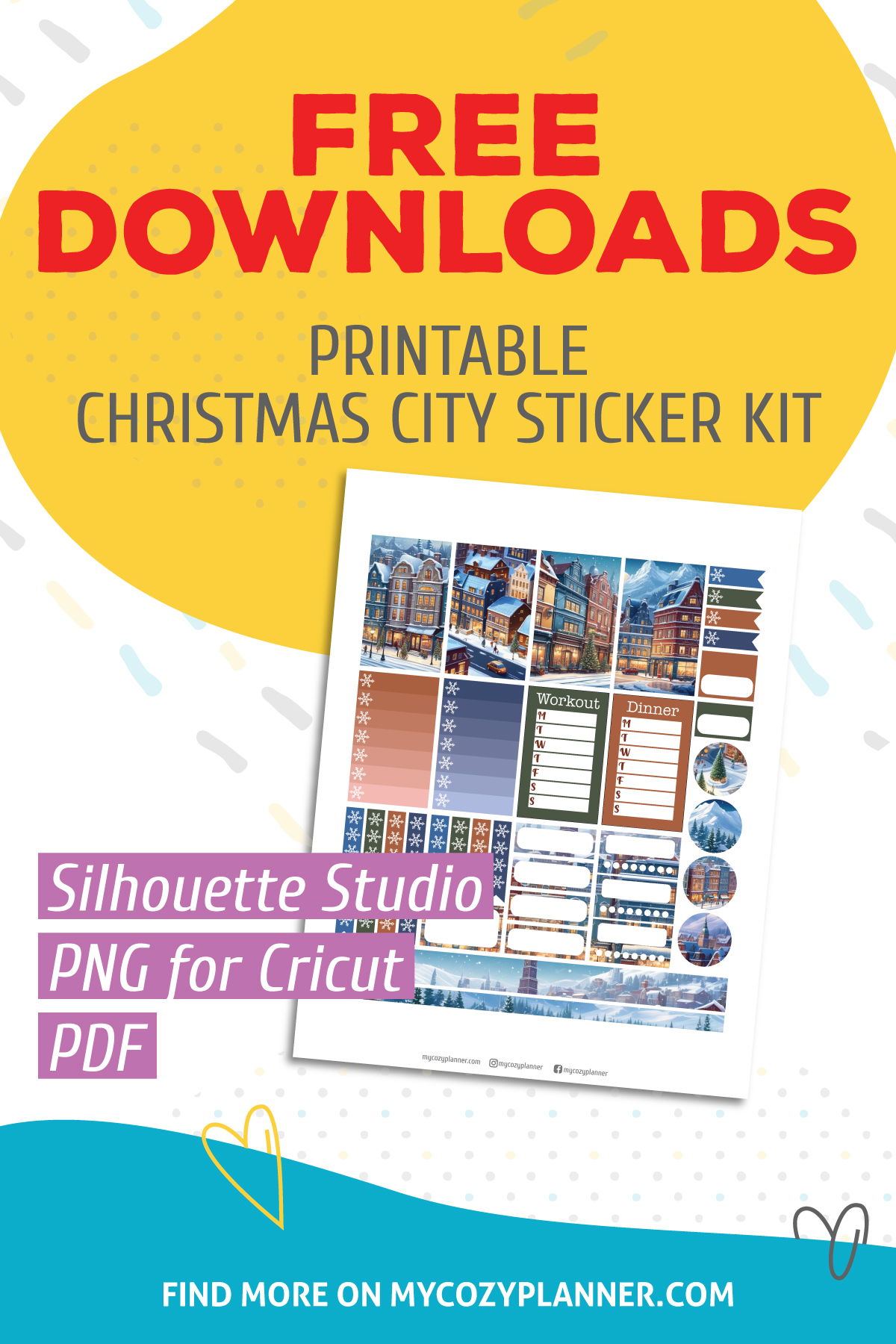Christmas City Sticker Kit. Free Printable Planner Stickers.