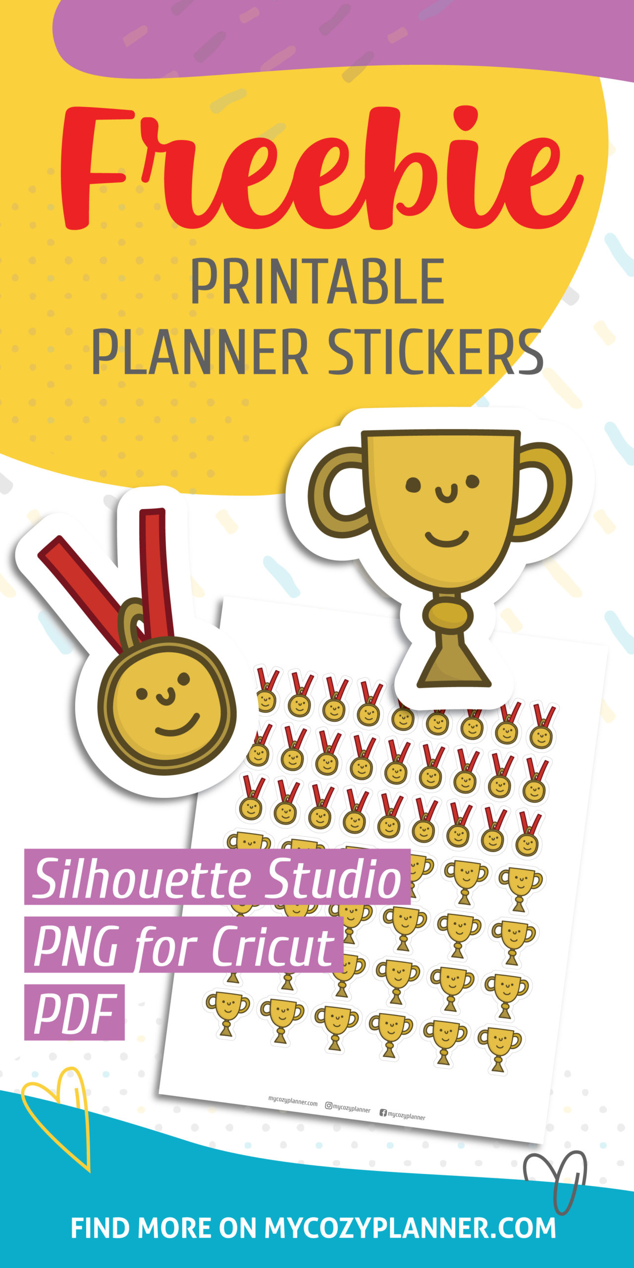 Download these Medal and Cups Stickers, print it and cut (with Silhouette machine or just scissors).