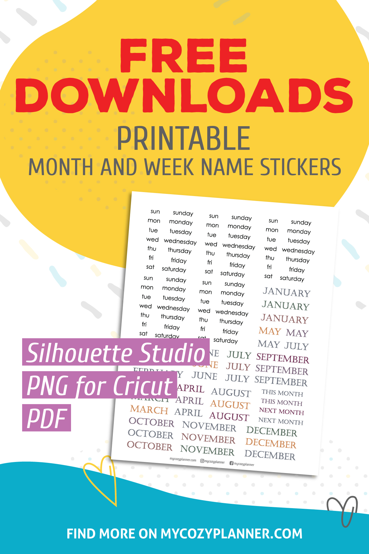 Download these Month And Week Name Stickers, print it and cut (by cutting machine or just scissors).
