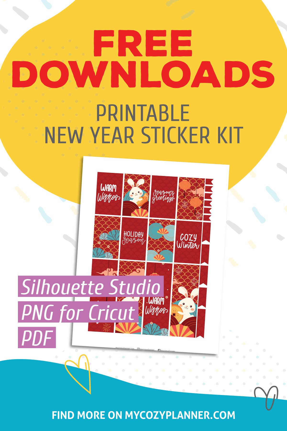 Red Rabbit New Year Sticker Kit. Free Printable Planner Stickers.