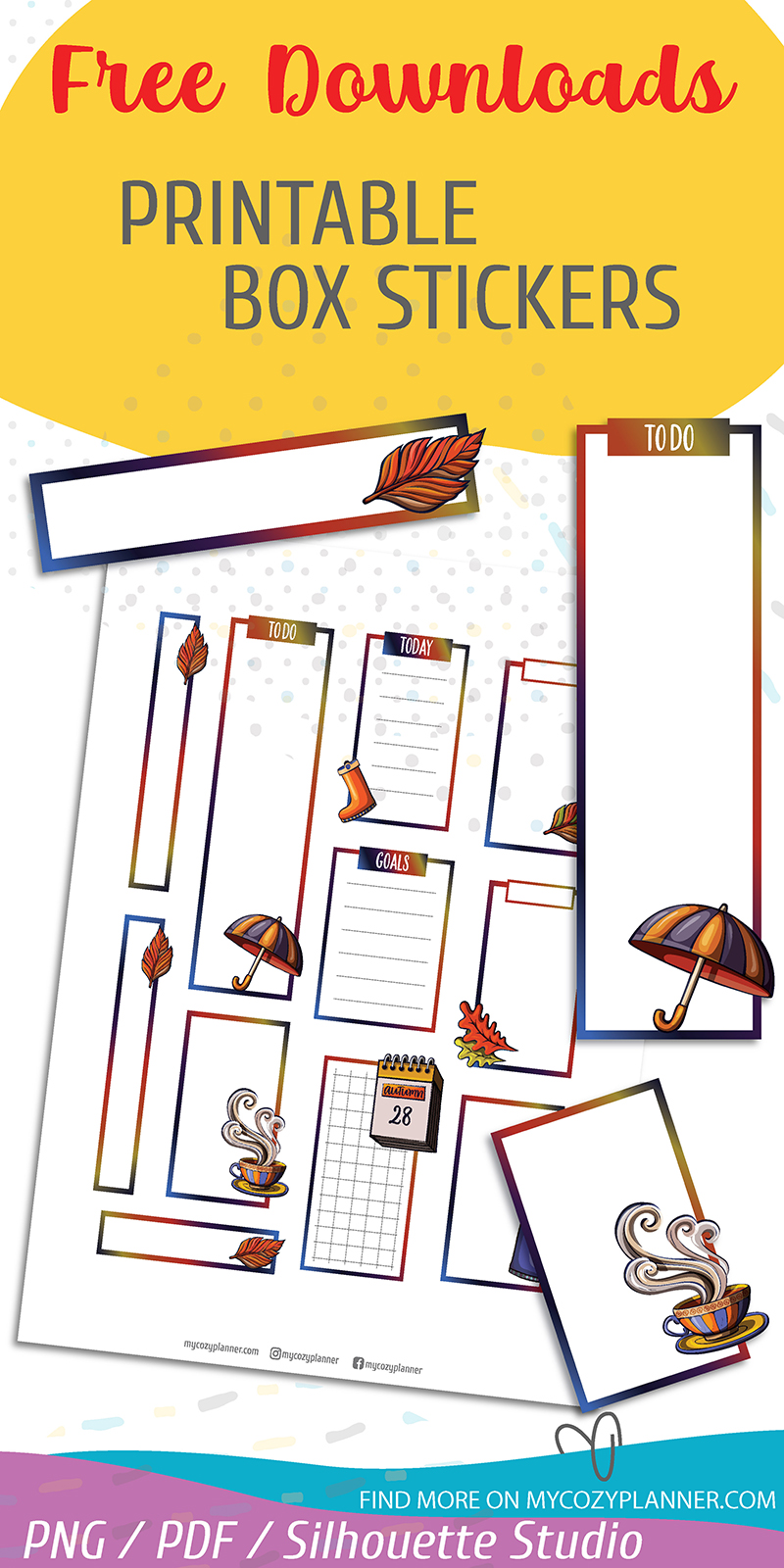 Download these Free Boxes Planner Stickers, print it and cut (by Silhouette machine or just scissors).
