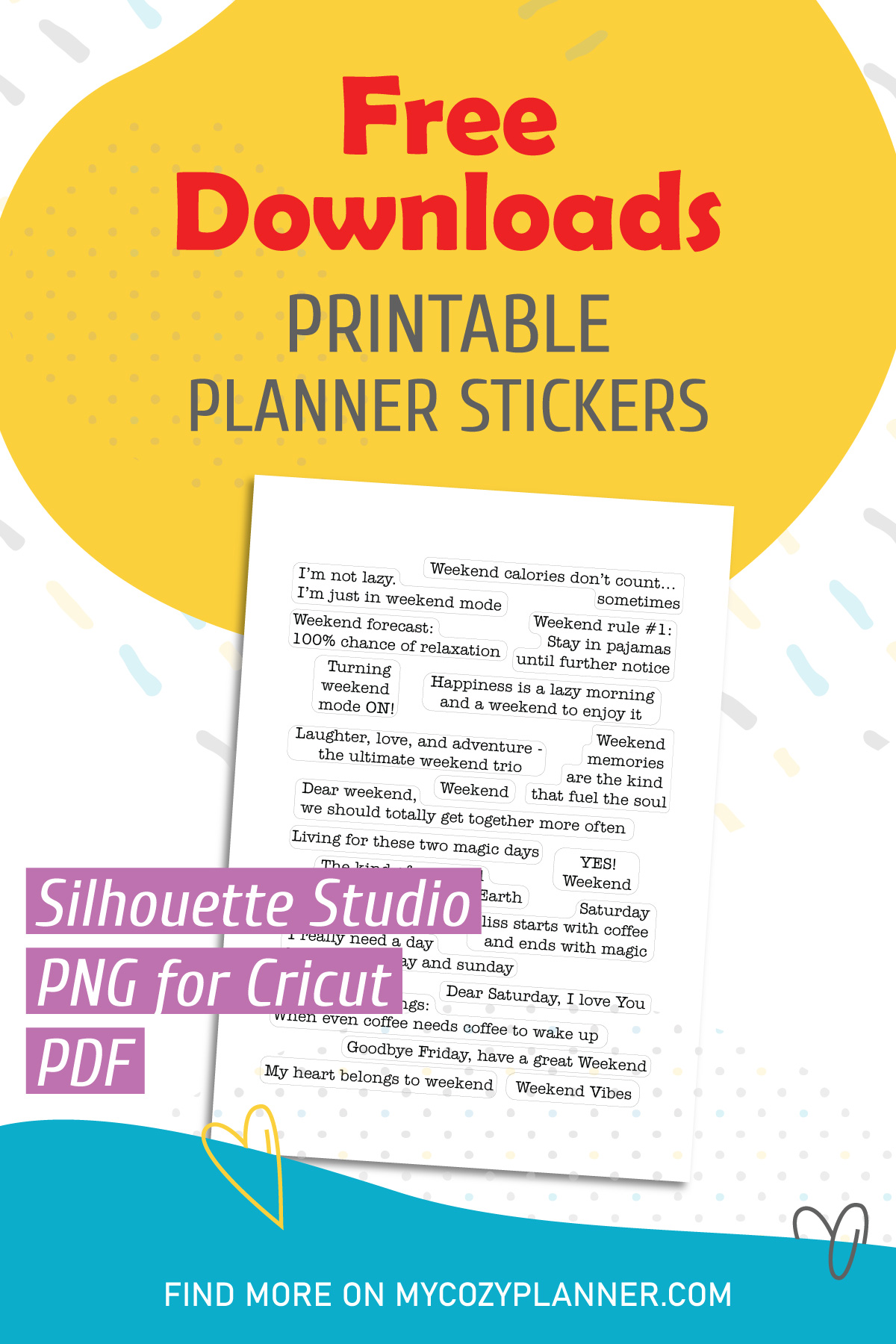 Introducing our Free Weekend Funny Quotes Stickers – a playful sticker set designed to bring a smile to your planner spreads!