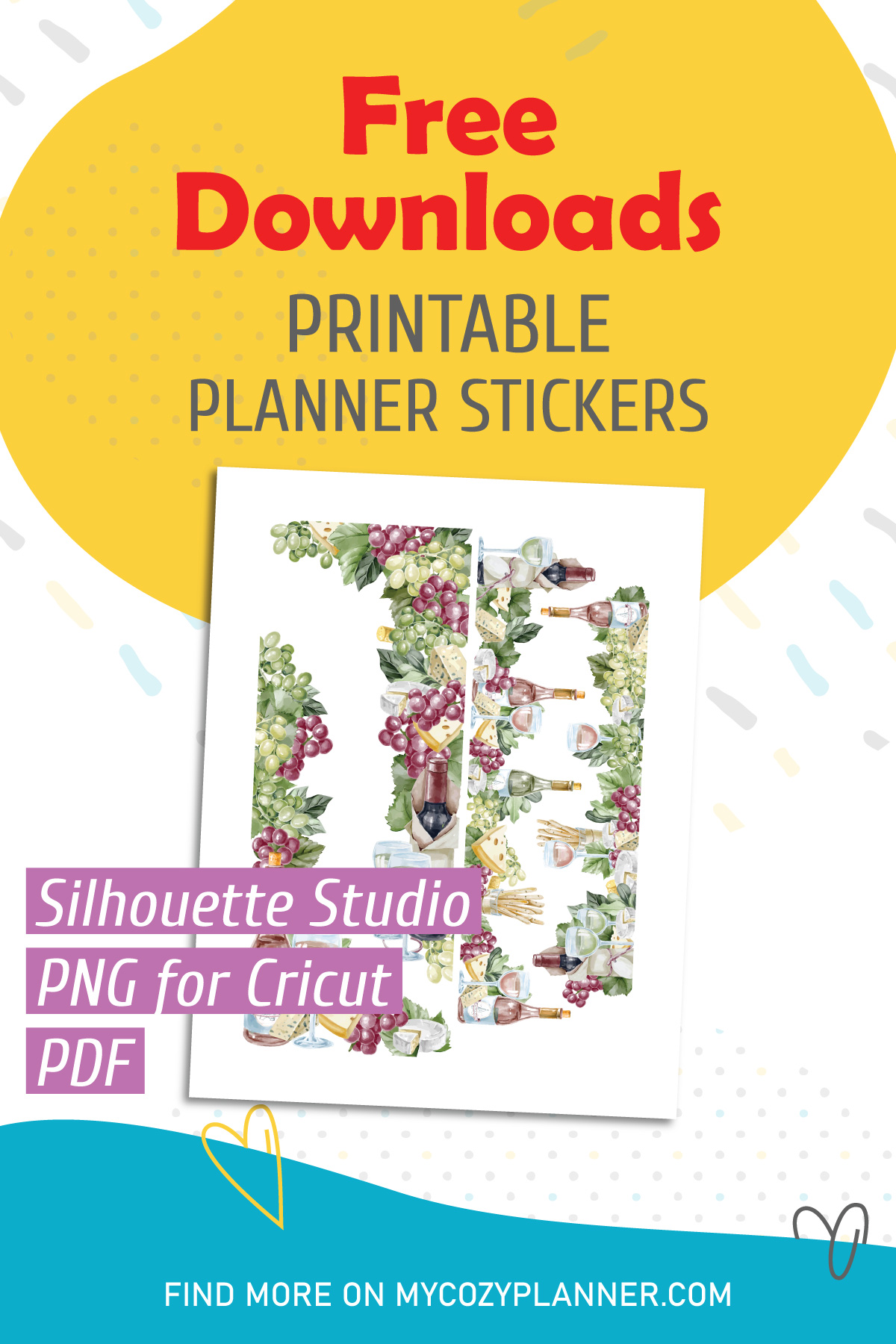 Add a touch of elegance to your planner or journal with our Free Wine and Cheese Border Stickers!