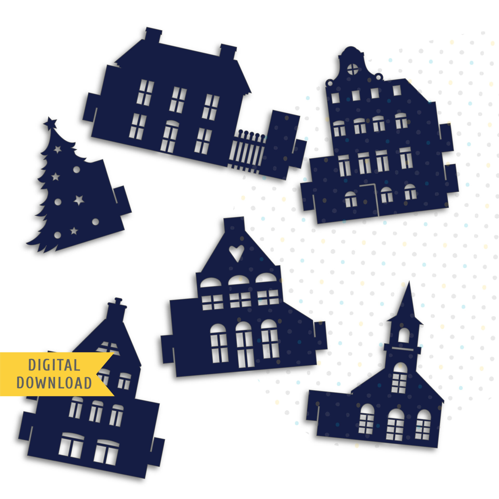 Christmas Cozy Village. Medium size. Printable Christmas Decor.