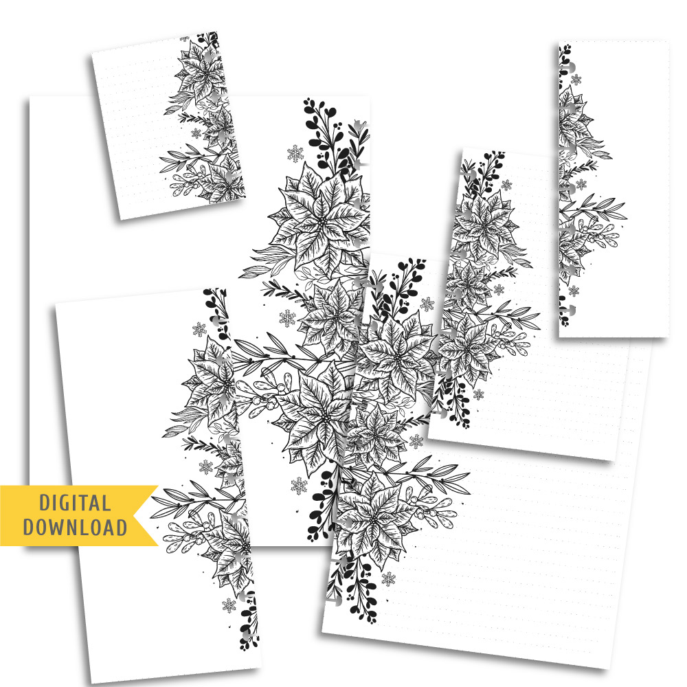 Printable Black Flowers plannerย page kit includes: