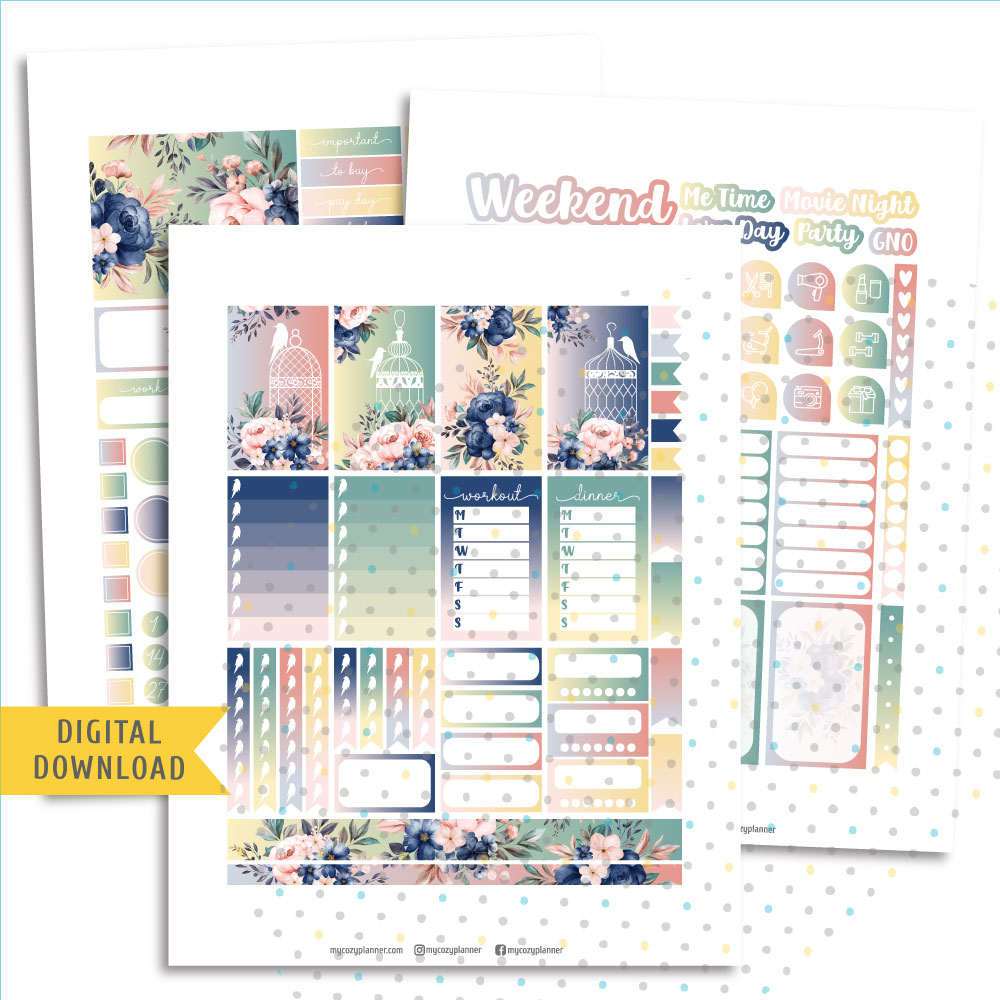 Blue Rose Sticker Kit. Printable Planner Stickers.