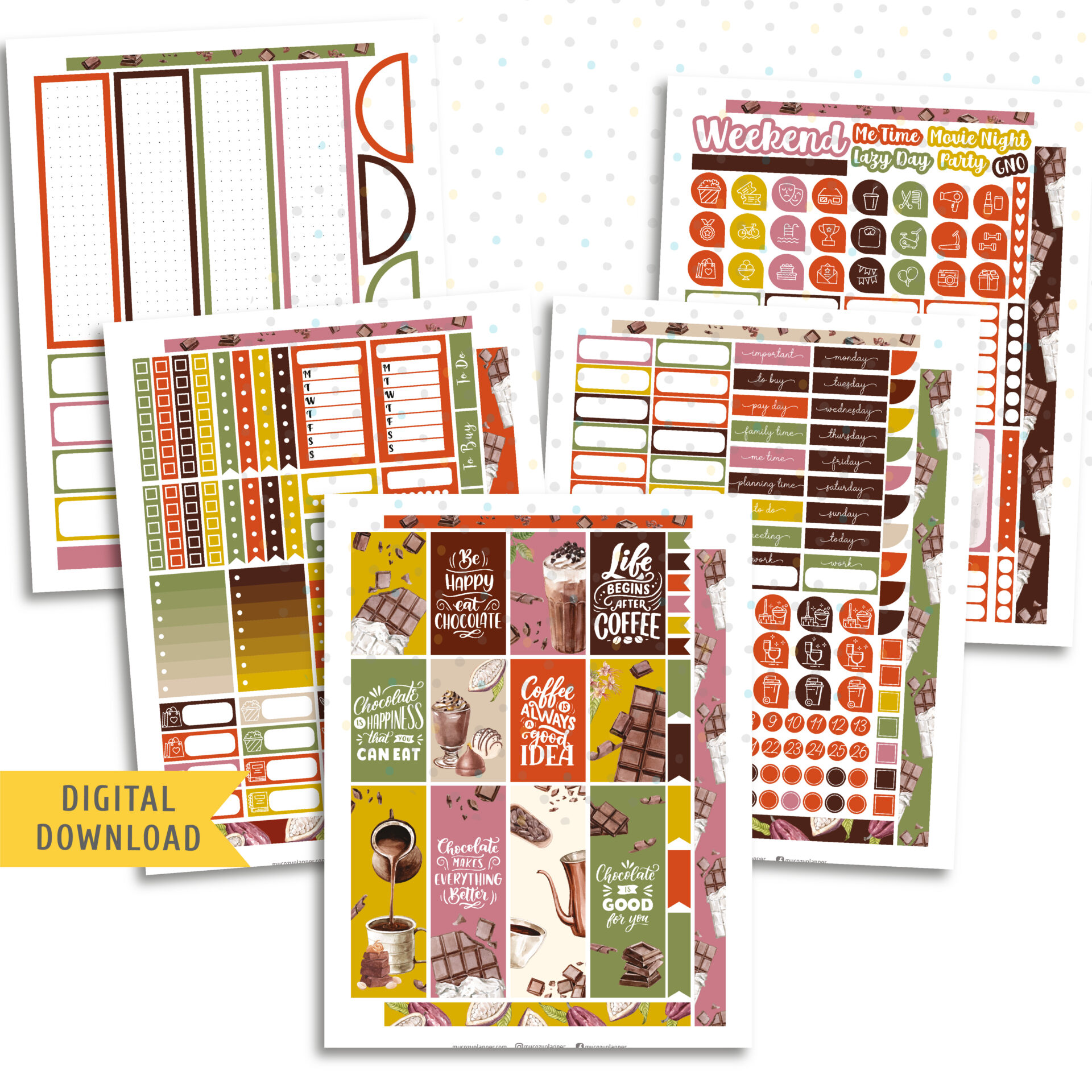 Chocolate Sticker Kit. Printable Planner Stickers.