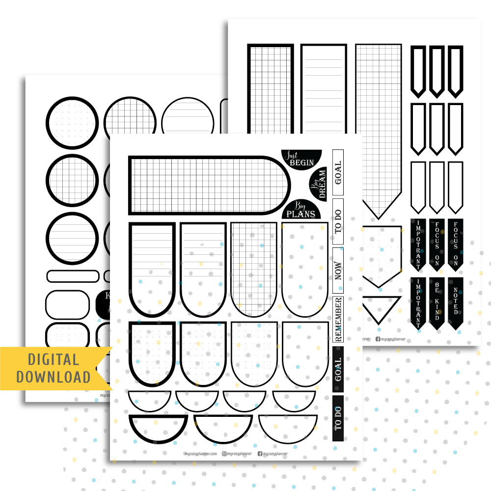 Printable Black Frame Stickers include: