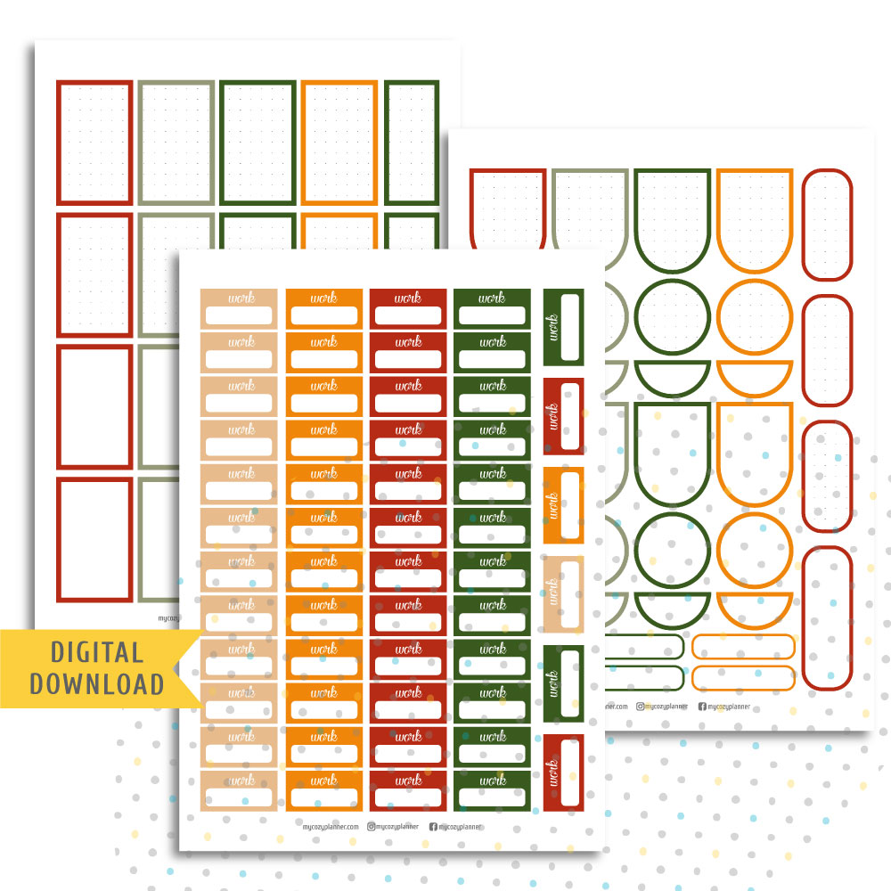 Colorful Work and Frames Planner Stickers. Printable Planner Stickers.
