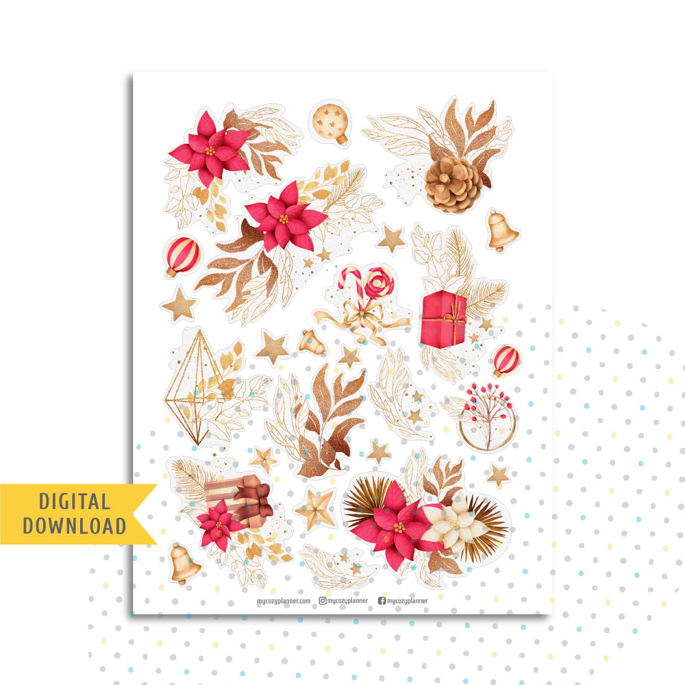 Golden Glow Stickers. Printable Planner Stickers.