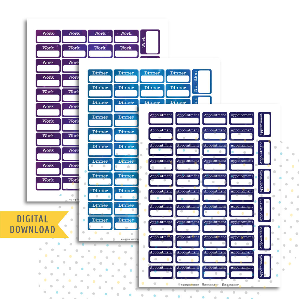 Printable SS-0047 Mystery Galaxy Work, Dinner & Appointment Stickers include: